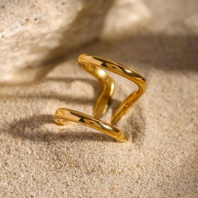 Our ring stands out for its refined design and high-quality materials. The double layer opening adds a unique twist to a timeless style, making it a perfect accessory for both everyday wear and special occasions. The 18K gold plating not only enhances its visual appeal but also ensures long-lasting durability and resistance to fading.