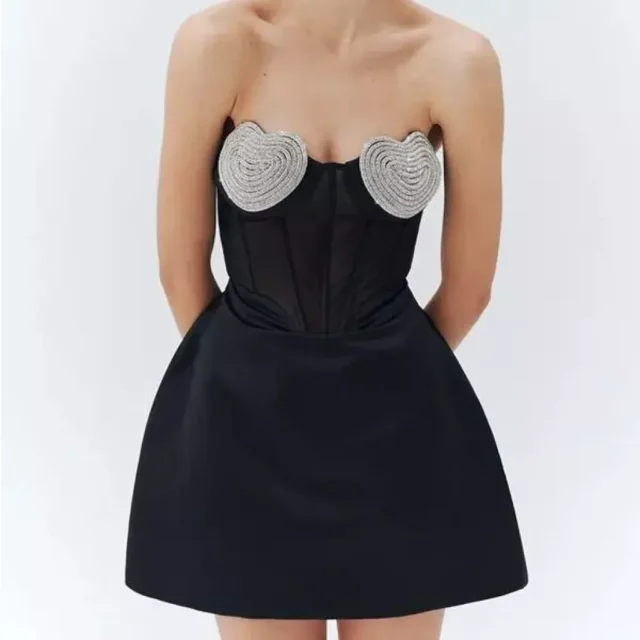 Our Strapless Sweetheart Crystal Mini Dress is not just a piece of clothing; it’s a statement of elegance and confidence. Designed for the modern woman who loves to stand out, this dress is best worn at weddings, parties, or any festive occasion. The combination of its flattering fit, romantic neckline, and minimalist design makes it special. It’s more than just a dress—it’s an experience in fashion, empowering you to feel your best.