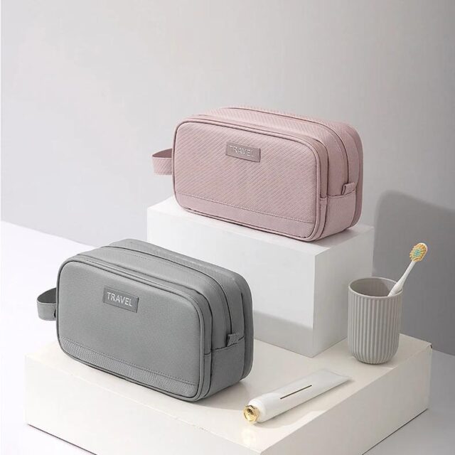 Featuring a practical double-layer design, this toiletry bag includes a spacious main compartment for dry items such as shampoo, conditioner, and toothpaste, and a separate waterproof pocket for wet items like towels and toothbrushes. The smart partitioning prevents moisture from spreading, keeping your belongings dry and your bag clean.