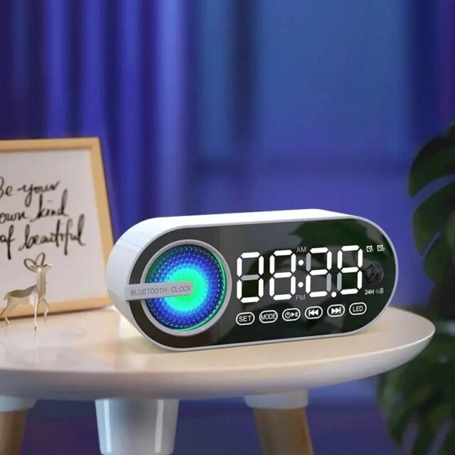 Upgrade your space with a Bluetooth speaker alarm clock that does it all—wake up on time, set the mood, and enjoy your favorite audio in any room. With its large display, customizable features, and high-quality sound, this alarm clock is designed to simplify your life and enhance your space. Don’t settle for an ordinary alarm clock when you can have one that meets all your needs in style.