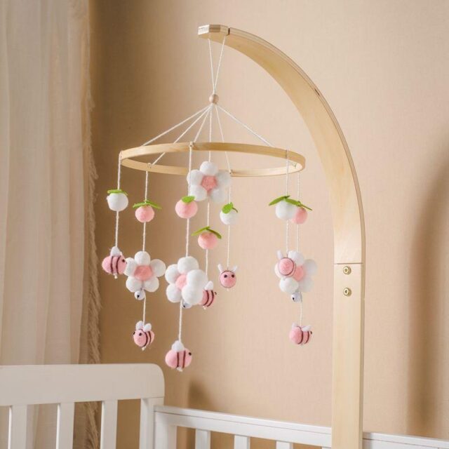 This wooden crib mobile is ideal for creating a serene atmosphere in your baby’s nursery. Whether used during naps, bedtime, or playtime, the gentle movement and soothing music of the bed bell encourage your baby to relax and fall asleep peacefully. The colorful cartoon bee design adds a touch of whimsy to the nursery, making it a must-have accessory for any new parent.